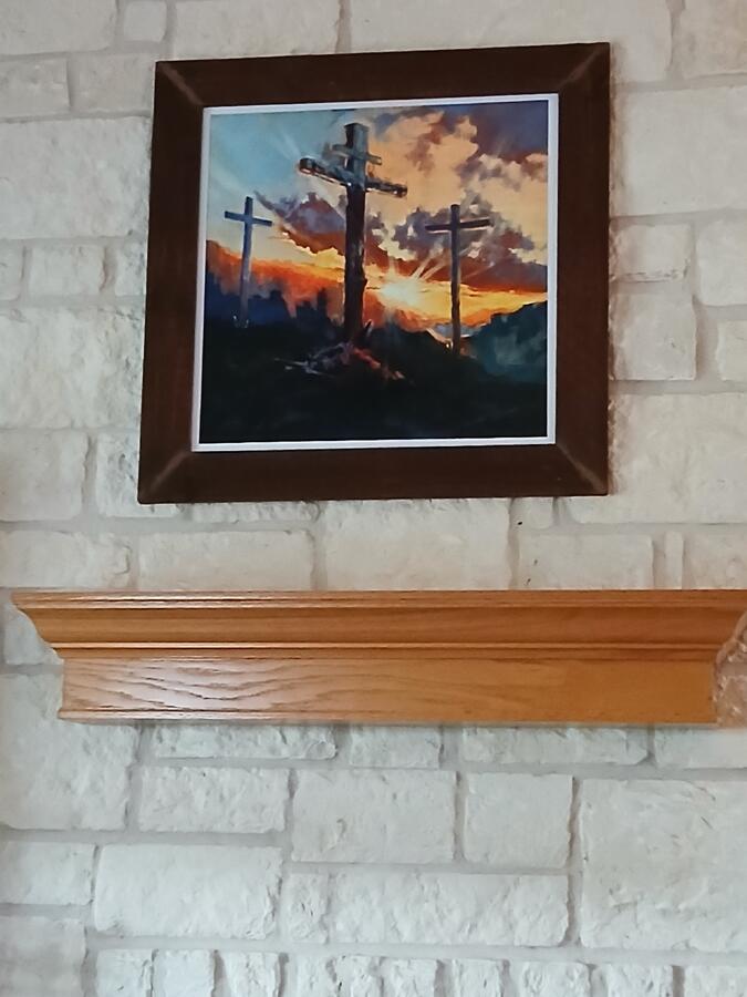 "I had my frame from old pallet wood. Ie the old rugged cross."