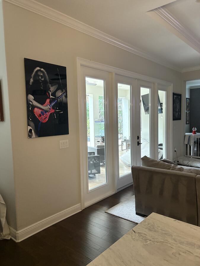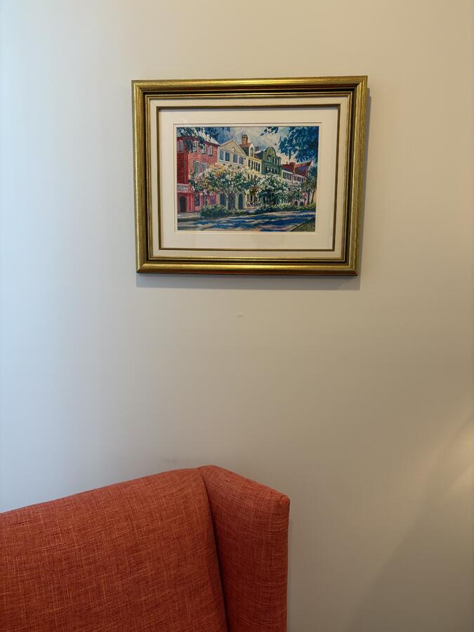 "The print is GORGEOUS and perfect colors for our newly renovated 100-yr old home in St. Augustine. Only issue is when I finally opened the box to hang the print, the frame was broken at the top - I can send pics - it's not letting me attach them here though. I don't know what you are able to do about that - can you let me know?"