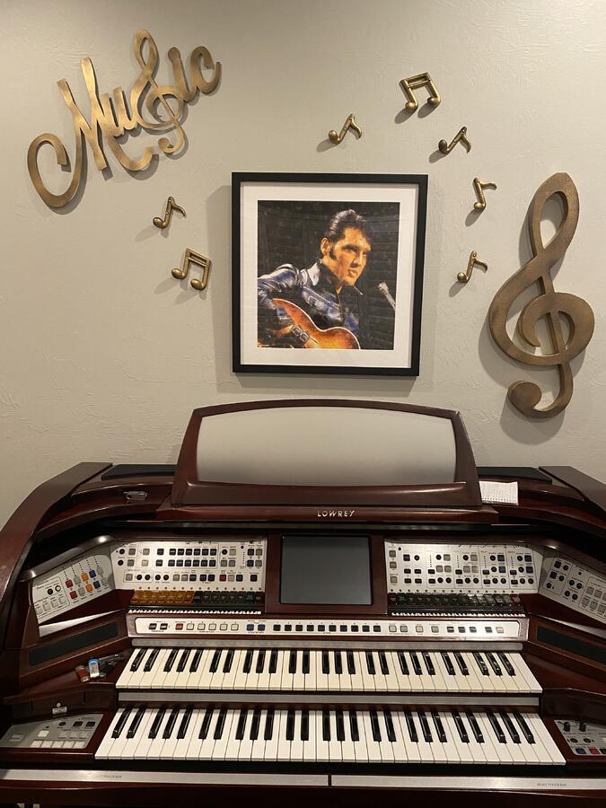 "It hangs with a cluster of art works on a wall above my piano Perfect art community."
